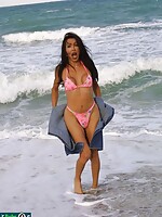 - Latin shemale stripping a bikini and showing her dick and he...